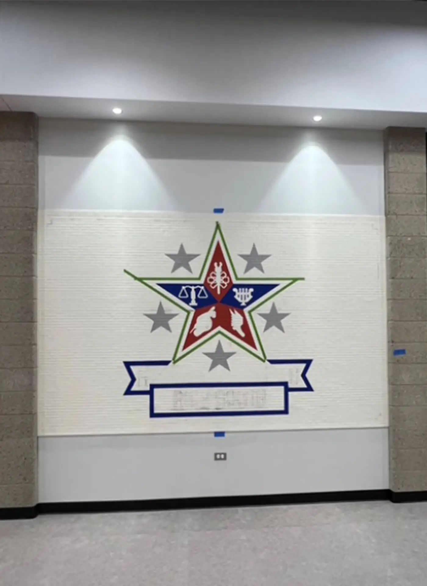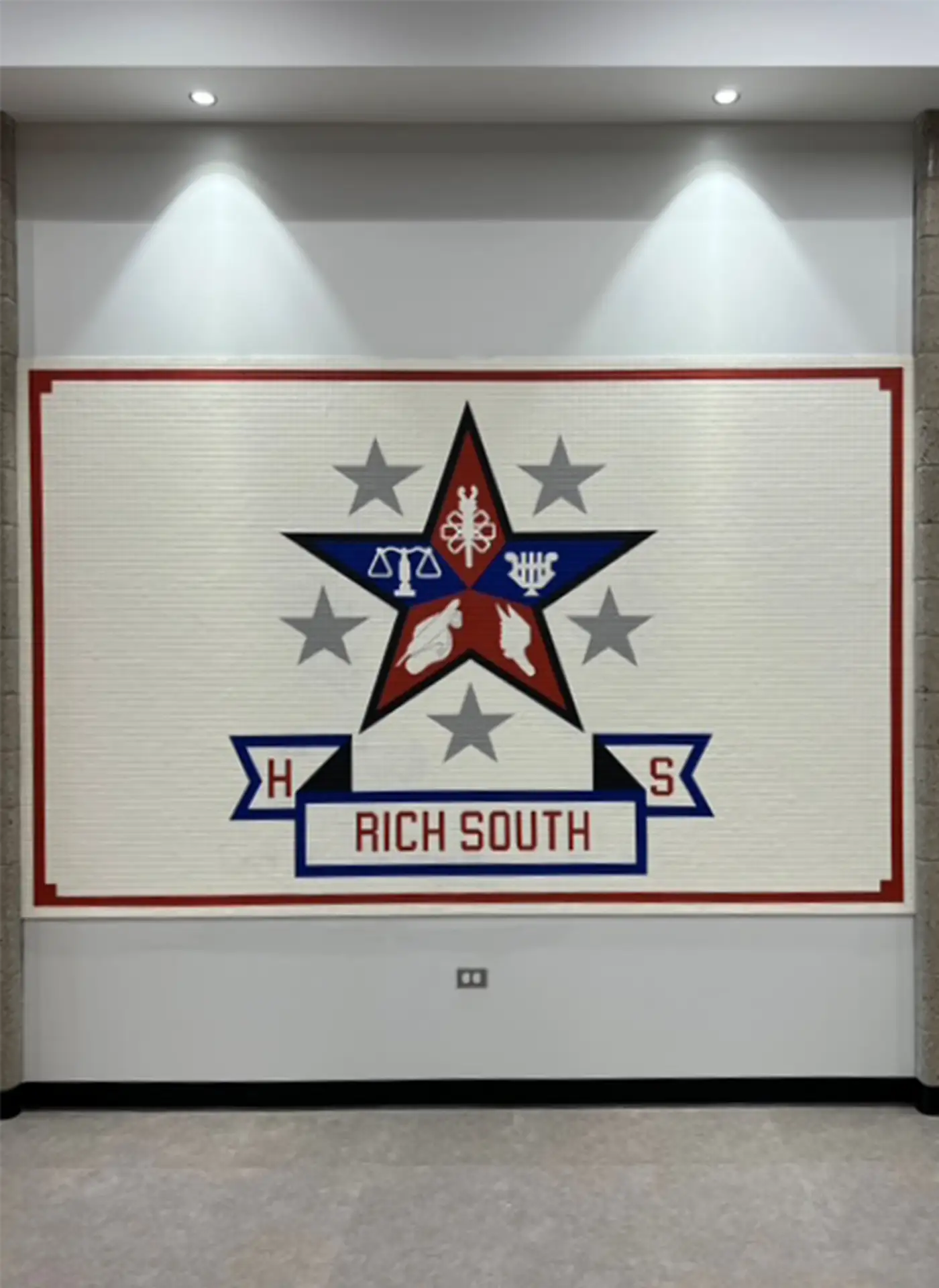 There are a few challenging ones, like recreating work from other artists/painters from years ago. One was at Moody Bible Institute in Chicago. I had to work on a scaffold that was built on top of a platform about 70 feet high. The other one is at Rich Township High School, where I had to recreate an Ansel Adams–style mural on a 14′ tile. It takes a lot of patience in doing such projects.