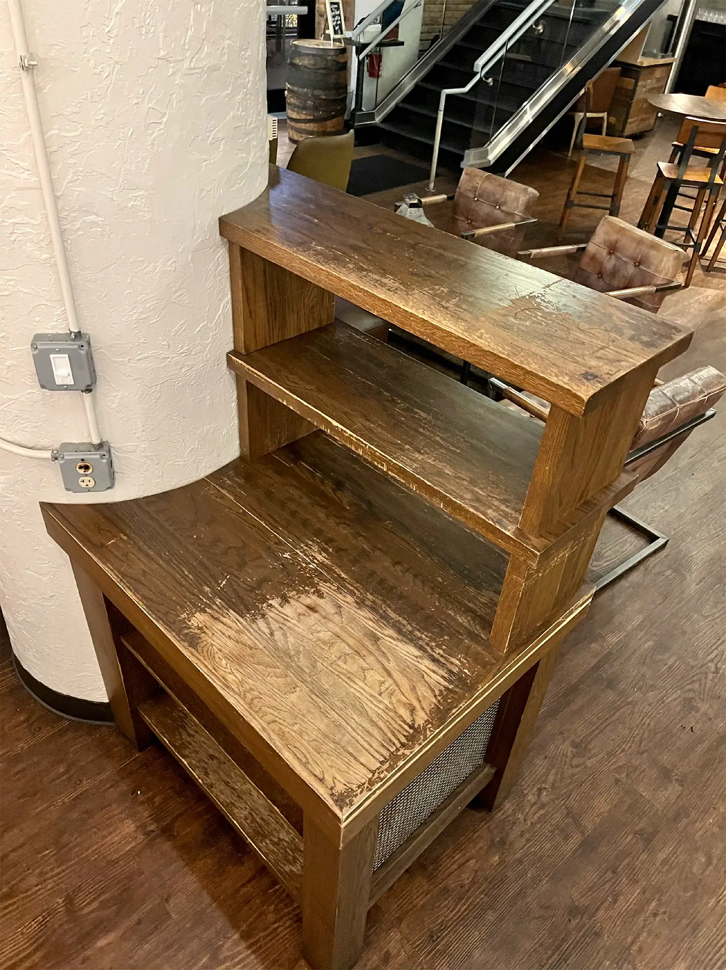 Here are the steps involved with this tremendous transformation for this restaurant furniture.